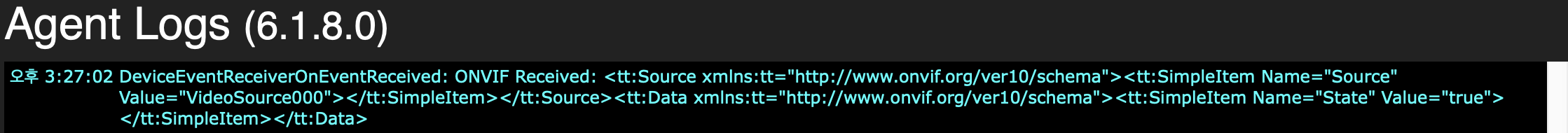Logs 2번째 아이콘을 클릭하면 다음과 같이 로그가 나오게 되며 xml 포맷으로 이벤트가 날라오는것을 알수 있다.
