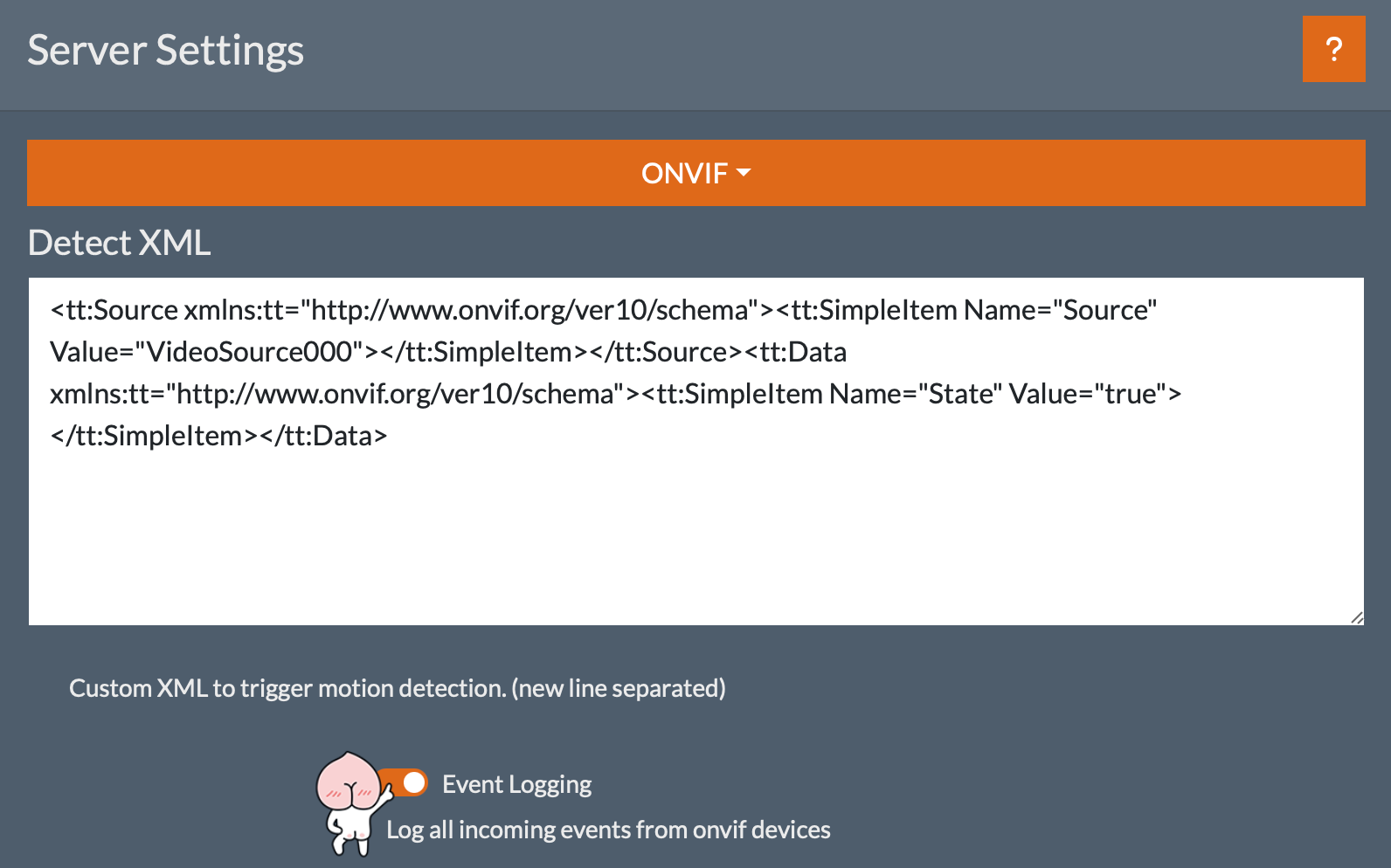 Event Logging, which is pressed by Peach, to find the log when motion dection occurs. The above image is already applied.